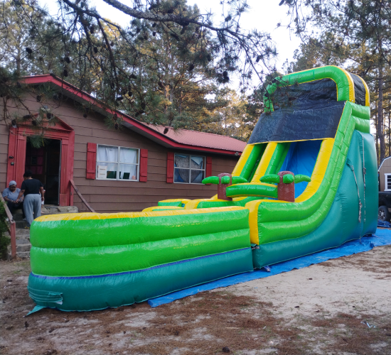 Get ready for a thrilling tropical adventure with the Palm Tree Slide! This vibrant inflatable slide features towering palm trees and a super slick slope for exhilarating rides. Perfect for any party or event, it guarantees endless fun and a splash of island paradise right in your backyard.